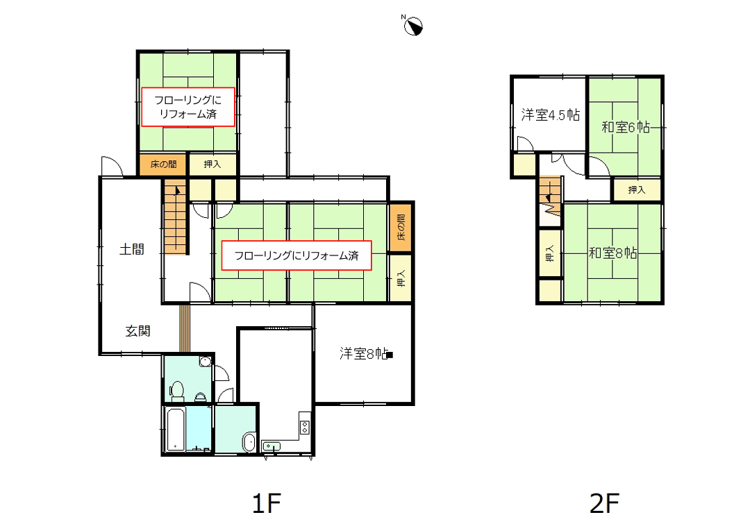 | 備考 | 2025年1F和室3部屋→フローリングへリフォーム、ガスボイラー新設。別途、保証料1,300円/月が必要。敷金不要、仲介手数料1ヶ月(7.15万)、初回保証料(3.25万)。別途、町内会費が必要 |